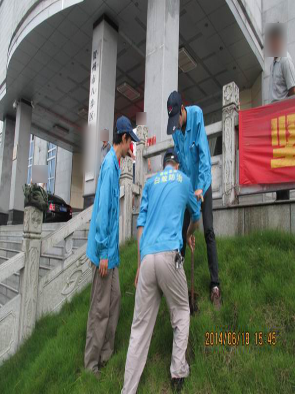 3.每年白蟻分飛秀節(jié),燈光引來繁殖蟻(俗稱大水蟲),當繁殖蟻掉落草地上交配成功時,便在草地里鞏巢繁殖為害園林綠化。